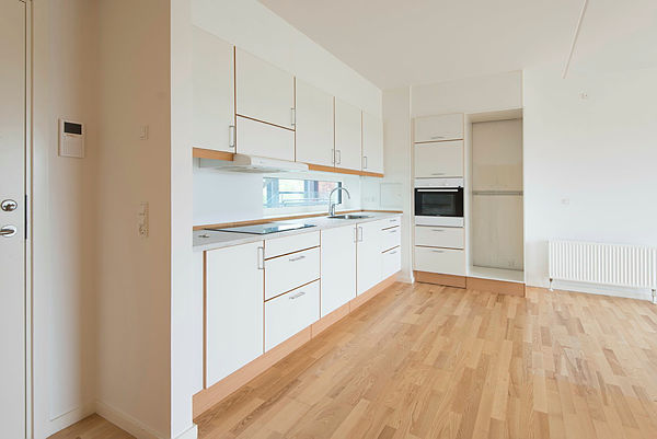 Vand og varme betales a conto sammen med huslejen. Der er komfur og ovn i boligerne, og der er forberedt til vaske- og opvaskemaskine. Der hører desuden et kælderrum til hvert lejemål.